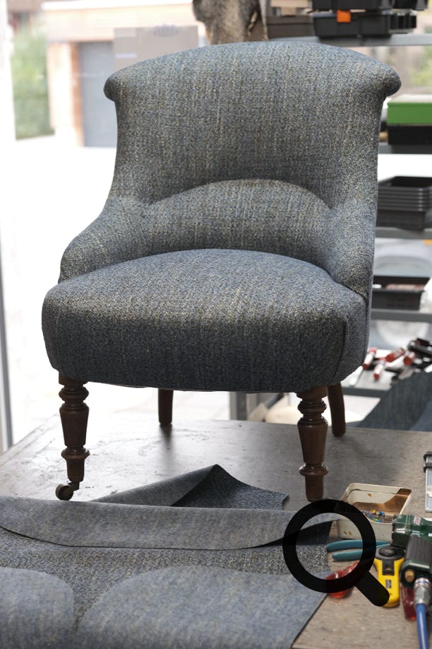 Zwei alte gutgebraucht Damenfauteuils wollen aufgefrischt werden. Das Gestell teilweise neu leimen. Die Schnürung ist noch gut, aber die Façon muss nachgarniert werden.